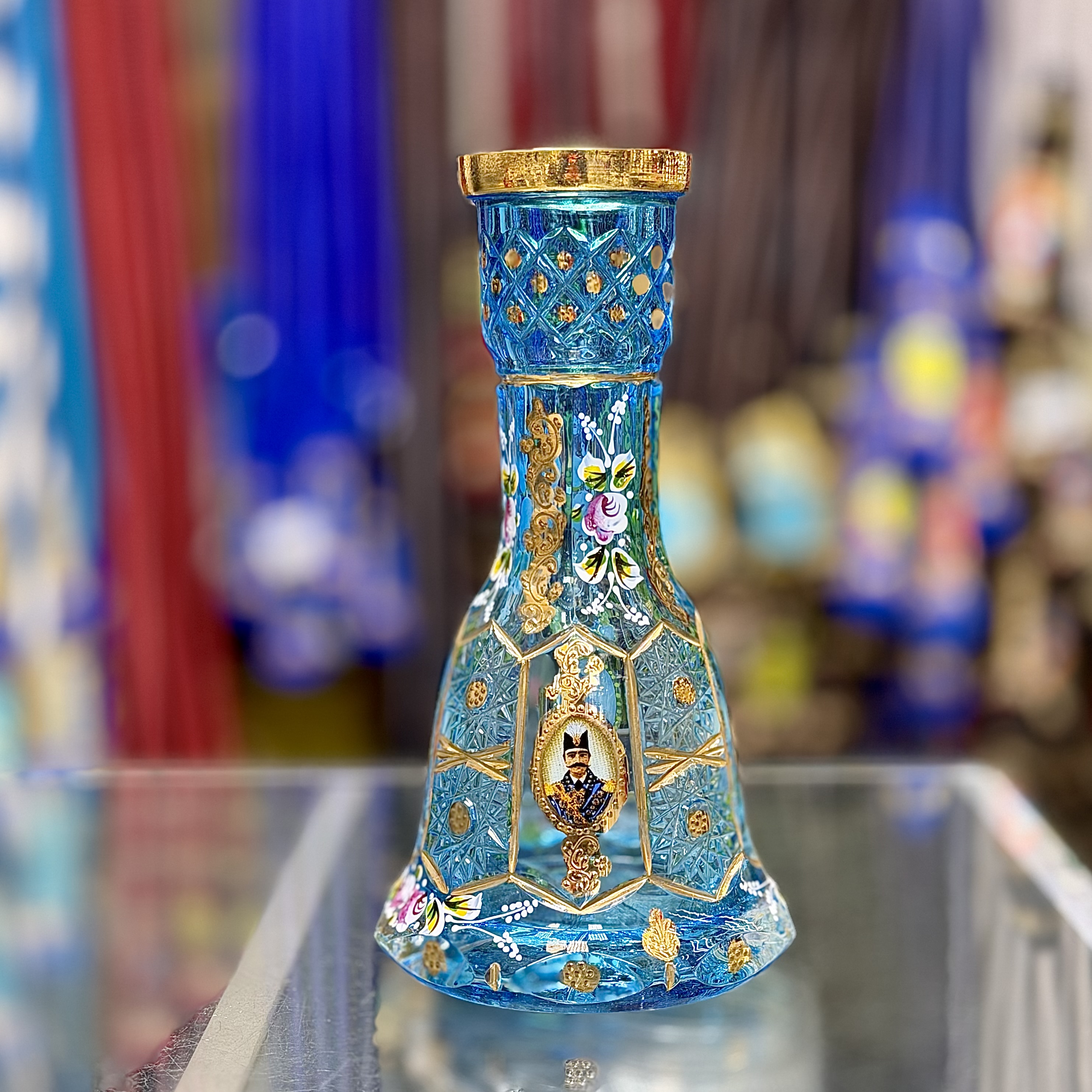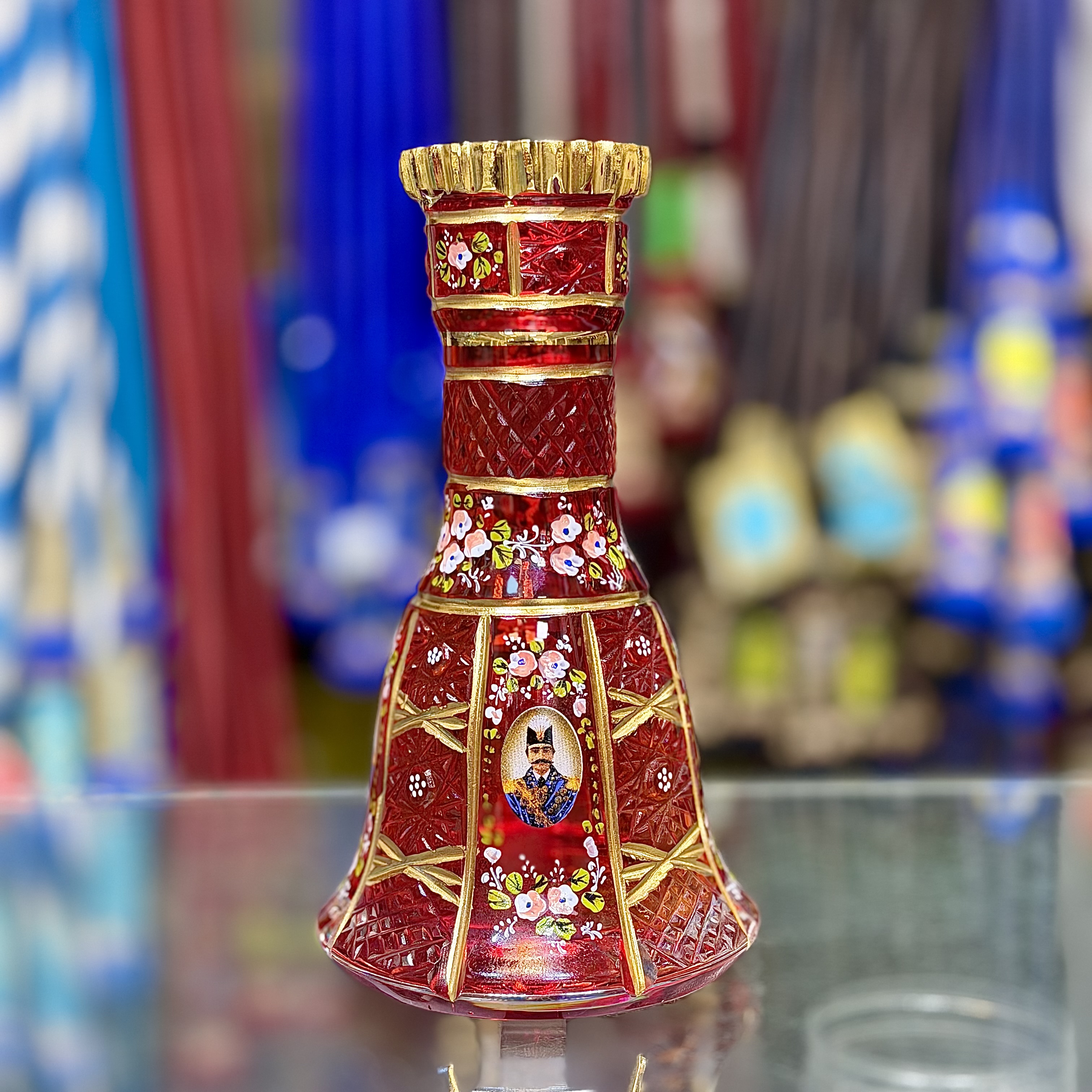 پرتره شاه عباسی با نقاشی گل و بوته روکش آب طلا
